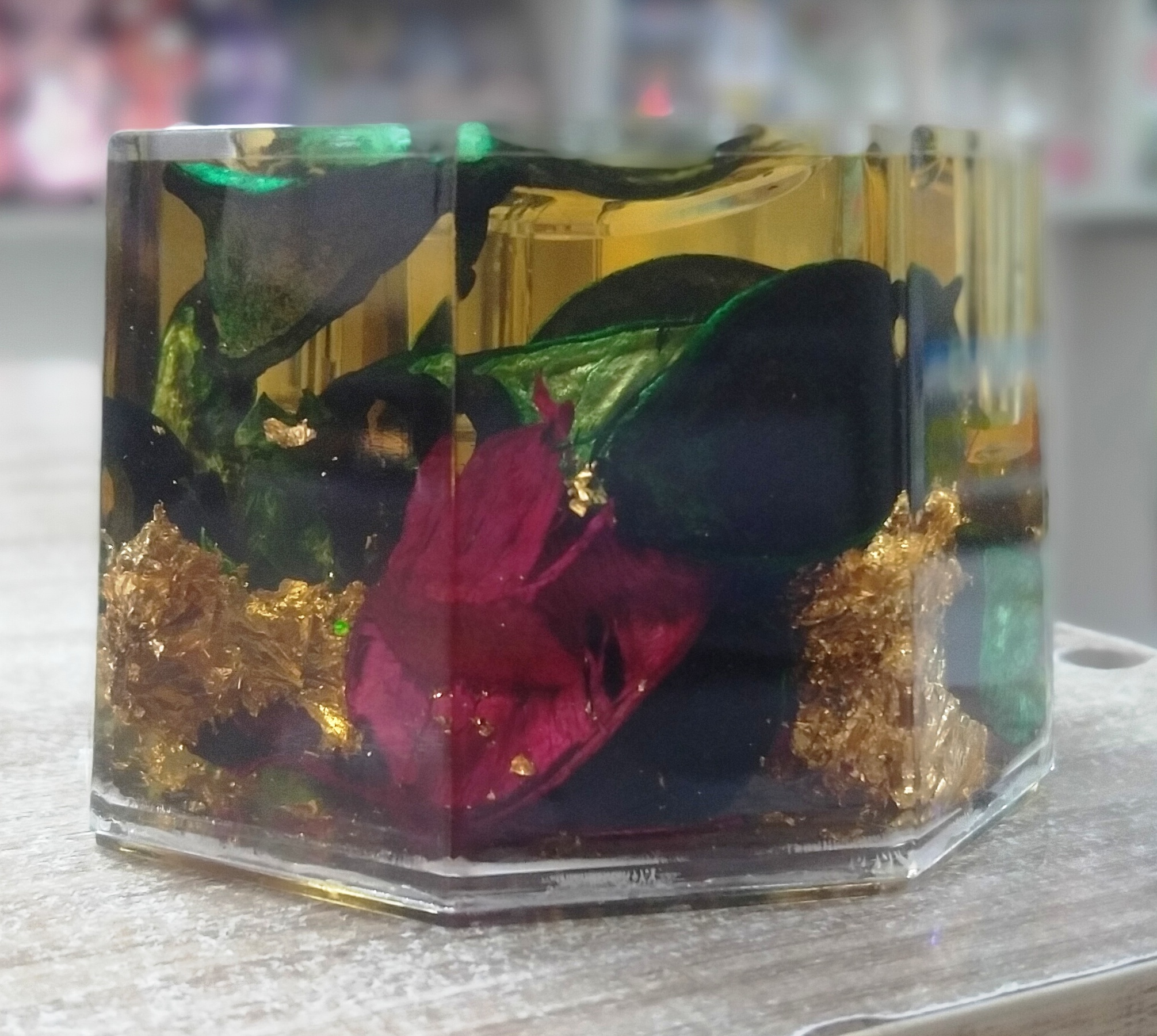 • 🔹 Durable & Long-Lasting: Sturdy resin construction ensures long life TRANSPARANT WITH GOLD FOIL and Dry Rose Petals. 🖊️ Multi-purpose Organizer: Use it for pens, brushes, stationery, or decor.